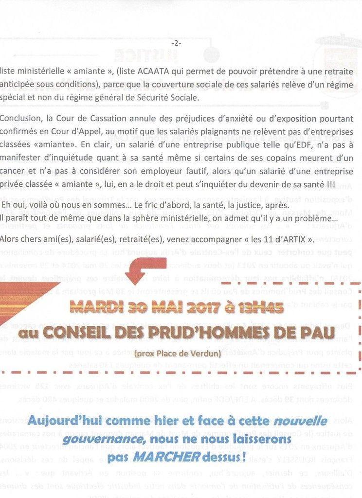 Les associations de la CAVAM Aquitaine (elles aussi inscrites dans le collectif dans le grand SO) : Allo-Amiante - Cerader 24 et 47 - Collectif des amiantés de Mimizan - UL CGT Morcenx soutiennent les 11 salariés d'ARTIX, et partagent leur combat..